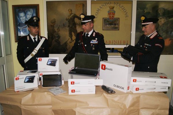 I carabinieri di Rocca Imperiale, nel cosentino, a seguito di mirata attività di indagine, hanno deferito in stato di libertà, per il reato di furto aggravato, F.M.G. di 55 anni, impiegato presso l’Istituto Scolastico Comprensivo “Federico II” di Rocca Imperiale. Nel suo garage i militari hanno rinvenuto 7 pc portatili e 8 tablet asportati il 16 aprile dalla scuola. La refurtiva, del valore di 5.000 euro circa, è stata riconsegnata al dirigente scolastico. Adesso gli studenti potranno usufruire del materiale informatico inerente specifico progetto didattico finanziato dall’Unione Europea.