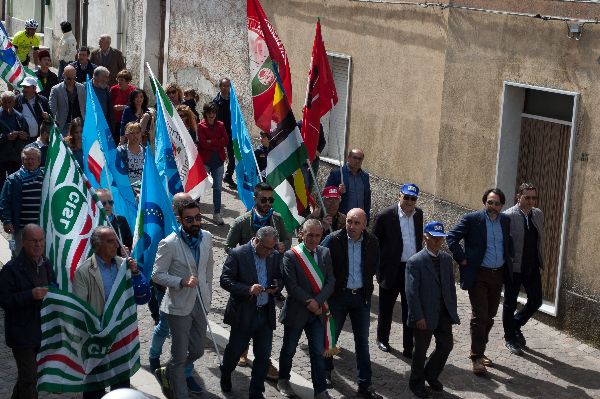 parlamentari, Ernesto Magorno e Nicodemo Oliverio del Pd, i sindaci del territorio (Scarpelli di San Nicola dell’Alto, Vulcano di Crucoli, Vallone di Crotone, Nicolazzi di Petilia Policastro e Laurenzano di Strongoli). Triplice sindacale, che non ha fatto sconti alle scelte politiche del governo Renzi. Forti le critiche su Jobs act, riforma della scuola e dei Caf. Contestazioni al Governo, arrivate alla presenza della rappresentante del dicastero al lavoro, Teresa Bellanova, presente alle celebrazioni proveniente da Melissa (in mattinata aveva fatto visita a Fragalà); nel corso della manifestazione la stessa sottosegretario, ha inaugurato il Parco letterario, dedicato allo scrittore di origini carfizzote, Carmine Abate. Vice ministro, che ha difeso le scelte dell’esecutivo: “La classe dirigente, non deve fare scelte comode. Con gli ideologismi, abbiamo dato vita ad un mercato del lavoro chiuso”, ha affermato. Come si diceva, il giorno del Primo maggio, nel piccolo centro arbereshe, è nato il Parco letterario che porta il nome dello scrittore vincitore, del Premio Campiello 2012, con ‘La collina del vento’, Carmine Abate, al quale Carfizzi, ha dato i natali. “Unico dedicato a uno scrittore vivente”, ha detto il primo cittadino, Carmine Maio. “Un parco, ha proseguito Maio, che vogliamo diventi un punto di riferimento della cultura calabrese”. “Questi luoghi, sono ricchi fuori e dentro. Solo chi è capace di amarli sa capirli e apprezzarne la bellezza e i tesori nascosti. Gli altri sono ciechi e ignoranti. O disonesti e malandrini che pensano solo alle loro tasche”. Questa la frase, tratta dal romanzo ‘La collina del vento’, posizionata sul primo leggio, tanti altri entro il prossimo mese di luglio verranno posizionati nel centro cittadino di Carfizzi; cioè, proprio in quei luoghi raccontati dallo scrittore.
