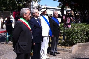 I componenti della banda e del coro della Città di Crotone, diretti dal M.° Riccardo Lorenti, hanno eseguito l’”Inno di Mameli” e valorizzato i diversi momenti la cerimonia, accompagnandone lo svolgimento con marce ed una selezione di brani musicali in tema con la ricorrenza. Dopo l’alzabandiera, il Prefetto ha salutato gli intervenuti e la cittadinanza, dando lettura del messaggio del Presidente della Repubblica ed ha deposto una corona in memoria dei Caduti per la Patria.