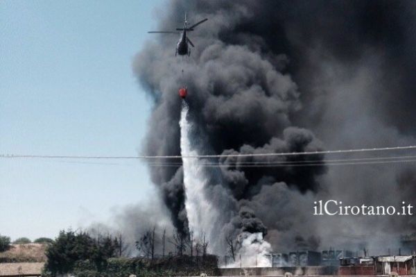 Sono ancora in corso di accertamento le cause dell’incendio divampato stamane in un’azienda di materie plastiche a Cirò Marina, nel crotonese (leggi articolo), che ha causato un’altissima colonna di fumo nero, visibile anche dai comuni limitrofi. Le fiamme hanno interessato il capannone, una catasta di cassette stipate in alcuni container e quasi tutti i mezzi, andati completamente distrutti, causando un danno economico quantificabile in 800mila euro. Il rogo è stato domato grazie all’intervento dei vigili del fuoco di Crotone e del distaccamento di Cirò Marina, determinante è stato l’intervento dell’elicottero antincendio della Protezione Civile. Fortunatamente nessuno è rimasto ferito nell’azienda “Ecoemm Srl” di Mario Malena e del consigliere comunale Salvatore Malena.