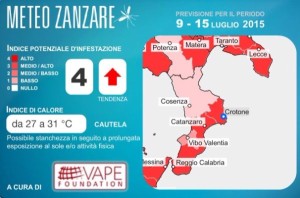 Con l’ondata di caldo che ha colpito l’Italia in questi giorni da nord a sud è sempre più allarme zanzare. Secondo i dati del bollettino meteo di Vape Foundation divulgati da Anticimex, azienda specializzata nei servizi di Pest Control, fino a mercoledì 15 luglio saranno le province di Catanzaro, Crotone e Reggio Calabria le zone della Calabria con l’indice potenziale di infestazione di zanzara tigre più alto, in una scala di intensità da 0 a 4, con una tendenza futura in crescita e un indice di calore compreso tra 27 e 31 gradi.