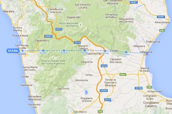 Tracciato Autostrada dei due Mari“Sarà Castrovillari, il capoluogo del Pollino, che sottoporrà all’attenzione del Ministero delle Infrastrutture e, più in particolare, al Dipartimento per la Programmazione e il Coordinamento della Politica Economica, la proposta dell’Autostrada dei due Mari, Villapiana-Castrovillari-Scalea” lo dichiara il sindaco di Castrovillari, Domenico Lo Polito. Un’arteria a scorrimento veloce, dal basso impatto ambientale, trasversale a tutte le attuali infrastrutture viarie esistenti che raccordi, nell’arco di soli 60 Km, la SS106 sullo Ionio, con la SS18 sul Tirreno, intercettando nella sua mezzeria, nel territorio di Castrovillari, l’Autostrada A3 Salerno – Reggio Calabria.