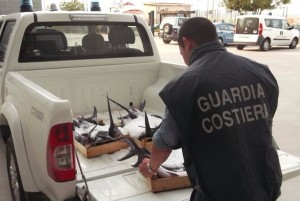 Nella giornata di oggi è stata condotta, dalla Capitaneria di porto di Crotone, una complessa operazione di Polizia Marittima finalizzata alla vigilanza ed al contrasto della pesca illegale di specie protette quali tonno rosso e pesce spada. L’attività di controllo, attestatasi precisamente nella frazione Le Castella del comune di Isola di Capo Rizzuto, ha portato a far rintracciare un pescatore intento a sbarcare da un’unità da pesca diversi esemplari di pesce spada sotto misura. Gli stessi venivano contestualmente caricati su un furgone per il successivo trasporto e commercializzazione del pescato. Colto in flagranza di reato, i militari della Capitaneria di porto di Crotone decidevano di intervenire, ispezionando il mezzo e rinvenendo all’interno 3 cassette contenenti 14 esemplari (circa 35 kg), di pesce spada di taglia inferiore alla taglia minima. Il prodotto ittico veniva immediatamente posto sotto sequestro e successivamente devoluto in beneficenza.