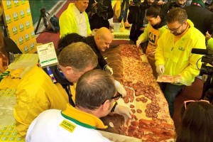 Tre metri di pane di Altamura e 100 chili di affettati doc. E’ il panino piu’ grande del mondo che Coldiretti ha preparato a Expo giovedì 29 ottobre, sul cardo, per rispondere all’allarme diffuso in questi giorni sul consumo di carne e insaccati, nella giornata dedicata dal sito espositivo alla carne. Dentro i 150 chili di pane, sono finiti prosciutto di Parma, di San Daniele, culatello di Zibello, salsiccia di Calabria, salame di Cinta senese Dop, e altri nobili prodotti della tradizione made in Italy. Intorno all’operazione da record, i visitatori di Expo incuriositi. Il super panino verrà donato al Banco Alimentare, l’organizzazione di volontariato che destina i prodotti alimentari alle persone indigenti.