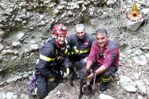 Cane da caccia precipita in dirupo, salvato dai pompieri nel catanzarese