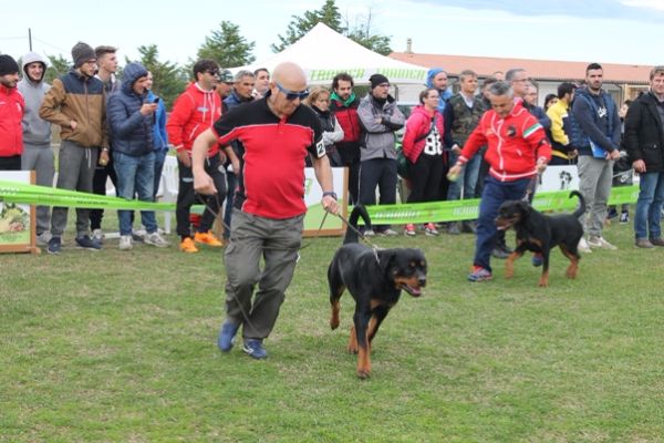 Gli organizzatori Si è svolto a Cirò Marina il 4° Trofeo “Arkon dell’Antico Guerriero”, manifestazione organizzata da Francesco Calfa e dall’A.S.D. Antica Krimisa Centro Cinofilo, con il patrocinio del Rottweiler Club Italiano e dell’ E.N.C.I. Francesco Calfa è un allevatore di Rottweiler con affisso “Rottweiler Dei Calabresi” che vanta un esperienza trentennale su questa razza, ha vinto numerose gare in Italia e all’estero. Per l’A.S.D. Antica Krimisa hanno partecipato Mariangela Ferraro, Valentina Senatore, Davide Codispoti e Aurelio Liotti. “Il trofeo ArKon è stato un raduno di razza molto importante che siamo riusciti finalmente a portare a Cirò Marina” ci spiega Liotti. “Durante la manifestazione sono stati assegnati due C.A.C. e due riserve di C.A.C. (Certificato di Attitudine al Campionato Italiano). L’evento è stato molto partecipato 84 cani iscritti nelle varie categorie provenienti da tutta Italia e alcuni dall’estero. Le categorie suddivise per età e sesso, Baby, Cuccioloni, Giovanissimi, Giovani, Classe Libera, Classe Intermedia, Classe Lavoro, Campioni, Veterani”.
