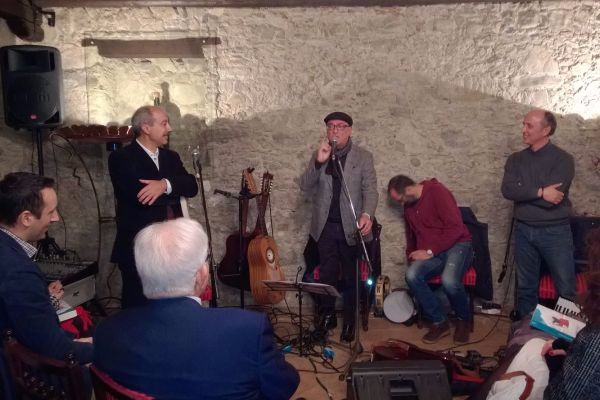 Un’opera che parla di emigrazione, lavoro, esperienze che legano ben quattro generazioni e che si sviluppano su tre continenti, Europa, America, Australia, ma hanno un unico punto di partenza, la sua amata Carfizzi, paese natale di Carmine Abate. Il libro è stato dedicato, come lui stesso ha detto, al nonno Carmine e ai figli Michele e Christian, il passato, il presente e il futuro, con l’augurio, come ha scritto che i giovani non siano costretti ad abbandonare la propria terra, ma che possano scegliere liberamente se restare o partire”. Accompagnato come dicevamo da Cataldo Perri, “medico per mangiare, musicista per vivere”, come lo stesso si è sempre definito. Un reading letterario è che è stato l’espressione vera, trasmessa oltre che dalle letture di brani, da una musica coinvolgente diffusa nella sala dalle percussioni della sua chitarra battente, accompagnato per l’occasione da Checco Pallone alle percussioni e chitarra, Enzo Naccarato alla fisarmonica.. Una serata che ha regalato emozioni e fatto rivivere in ciascuno dei presenti ricordi, sensazioni, riflessioni e una musicalità coinvolgente che ci fa sentire al centro noi stessi. Al termine come sempre, un ricco e gustoso buffett a base di prodotti tipici e, immancabilmente, vino Librandi.