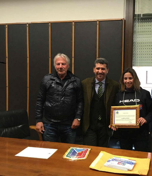 Ad Ilaria l’assessore allo Sport ha consegnato una pergamena con la quale il sindaco Vallone esprime il ringraziamento della comunità cittadina per i risultati sportivi ottenuti.