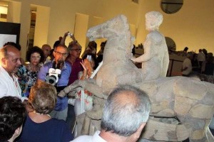 Ultimato il restauro del Cavaliere di Marafioti, gruppo fittile di terracotta di epoca magno greca rinvenuto agli inizi del secolo scorso da Paolo Orsi a Locri. L’opera e’ stata presentata al Museo nazionale di Reggio Calabria ed e’ tornata allo splendore con i finanziamenti del gruppo Banca Intesa “senza cui – ha detto il direttore del Museo Carmelo Malacrino – non sarebbe stato possibile”. L’archeologo Maurizio Paoletti, docente all’Unical, ha ricordato “come il gruppo, costituito da una figura umana, un dioscuro a cavallo e una sfinge alata, fosse un ‘esploso’ di 180 parti che solo la grandezza di Orsi e dei suoi collaboratori riusci’ a riportare alla ricomposizione”. Il restauratore Giuseppe Mantella ha spiegato i processi che hanno permesso anche di definire l’originale policromia. L’opera sara’ a Milano dall’11 marzo in occasione delle giornate del Fai e rientrera’ a Reggio il 17 luglio. Nel corso dell’incontro e’ stato annunciato che l’apertura del Museo, dopo i restauri, avverra’ il 30 aprile.