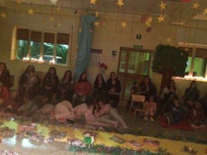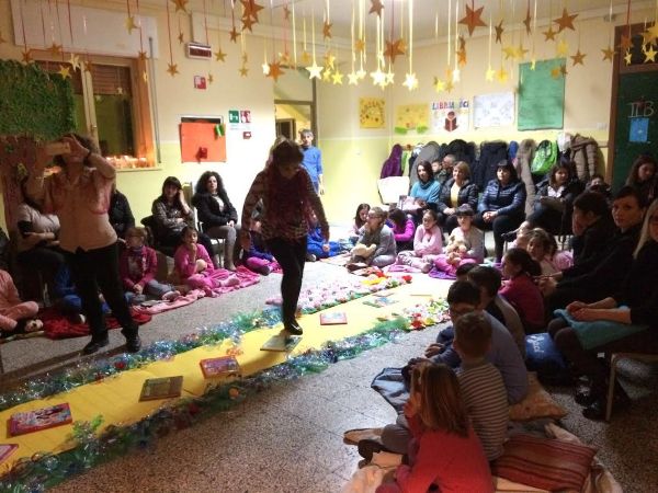 stati coinvolti all’ascolto in un’atmosfera magica. Le letture sono state arricchite da sottofondo musicale, scenografie fiabesche e canti dei bambini. La serata si è svolta grazie anche all’intervento e la collaborazione sempre attiva e fattiva dei genitori,che si sono prodigati nella realizzazione delle scenografie realizzate con materiale riciclato. I veri protagonisti sono stati i bambini che hanno vissuto questa nuova esperienza con meraviglia e sorprese, venendo a scuola con un abbigliamento insolito: pigiama,pantofole,copertine,pupazzetti e libri. Per