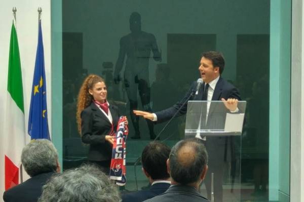 Siparietto calcistico di Matteo Renzi durante la visita a Reggio Calabria, per l’inaugurazione del museo dei Bronzi di Riace e la firma del Patto per la Calabria (leggi notizia). Il premier, citando la promozione del Crotone in serie A chiede la sciarpa della squadra calabrese. Poi, quando gliela porgono, ci ripensa: “No, la mia resta viola. Diffidate di chi cambia squadra per prendere due voti”. Ieri sera Renzi aveva commentato con un bel tweet la promozione del Crotone in serie A: “Un’altra fantastica storia di calcio da sogno. Onore alla neopromossa: #crotoneinseriea”.