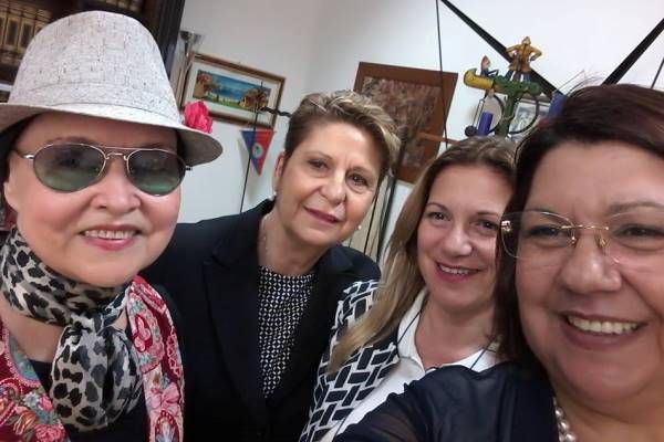 Tatyana Mamonova, Giusy Regalino, Francesca Paladini e Francesca Gallello Tatyana Mamonova, per la prima volta in Calabria si innamora del sole e del calore umano dei calabresi che ha definito spettacolare. Ricordiamo che Tatyana Mamonova, giornalista del “The New York Times” e di molte testate giornalistiche importanti, è stata la prima femminista dissidente esiliata dall’Unione Sovietica nel 1980 per aver osato scrivere delle condizioni delle operaie in Russia. E’ stata la prima donna organizzatore ed espositore nel movimento artista anticonformista in Russia e una giornalista letteraria e televisione con Aurora Publishers che lavorano a fianco di Joseph Brodsky. Ha tenuto conferenze in centinaia di università e organizzazioni pubbliche negli Stati Uniti e in tutto il mondo, tra cui la partecipazione a un giro di conferenze nazionali. Ha fatto visite e studi a favore delle donne in Africa, Australia, Giappone, Stati Uniti, India, Sud America, Repubblica Dominicana, Scandinavia, Francia, Germania, Olanda, Italia e Grecia, con il sostegno di Amnesty International, Alliance Français. Ha esposto in più di 20 paesi dove la sua arte è stata ed è premiata, molte volte ha donato i proventi a beneficio delle attività della sua ONG e campagne per i diritti umani in tutto il mondo. Lei è anche produttore esecutivo di una serie televisiva settimanale educativo in Manhattan.