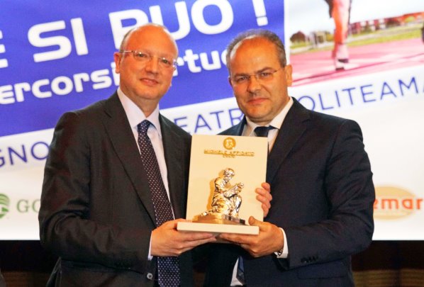 Il Pitagora d’Argento realizzato dall’orafo crotonese Michele Affidato è stato scelto da Unindustria Calabria per ringraziare il neo Presidente di Confindustria, Vincenzo Boccia, della sua presenza all’assemblea pubblica della confederazione calabrese degli industriali che si è svolta martedì 14 giugno a Catanzaro, presso il Teatro Politeama. Gli industriali calabresi si sono confrontati sul tema “Ripartire si può! Opportunità e percorsi virtuosi”, convinti che, nonostante difficoltà, ostacoli, vincoli e ritardi annosi, esista, anche qui, un tessuto produttivo vitale, che è doveroso difendere, sostenere, promuovere ed incoraggiare a crescere. A proposito di realtà virtuose, Unindustria Calabria, presieduta da Natale Mazzuca, ha commissionato al maestro Affidato l’opera consegnata al Presidente Boccia a ricordo della giornata trascorsa insieme.