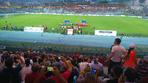 Non è stata la solita amichevole d’agosto affinché i rispettivi tecnici costatassero il livello di preparazione raggiunto dalle proprie squadre. Si è trattato di un incontro che di amichevole ha avuto soltanto l’intestazione. In campo due squadre che hanno soddisfatto il numerosissimo pubblico presente in ogni ordine di posto. Nel corso dei 96 minuti e’ sembrato di vedere in alcuni momenti l’Atletico Madrid formato finale Champions League, ed un Crotone quasi pronto per la serie A che ha tenuto testa al piu’ quotato avversario. Formazioni schierati con i migliori uomini ad eccezzione di qualche acciaccato o in debito con la preparazione. Rossoblu’ con il trio difensivo Ceccherini a destra, Claiton e Ferrari centrali; Sampirisi, Capezzi, Salzano, Martella a difendere il reparto mediano; Tonev esterno destro, Stoian esterno sinistro, Palladino punta centrale. Gli spagnoli in campo con i sette/undicesimi della finale champions. Gli uomini di Diego Simeone fin dal primo minuto hanno fatto capire che volevano vincere l’incontro e con i vari Borre’ e Thomas hanno cercato la via del gol. Il primo affondo degli ospiti al dodicesimo minuto con Thomas che manda il pallone a sfiorare il palo alla destra di Cordaz. Il numero uno pitagorico compie il miracolo al minuto ventiquattro respingendo un pericoloso pallone. Il Crotone ha risposto alle pericolose giocate avversarie con Palladino in piu’ occasioni e con Stoian che sulla fascia sinistra ha fatto soffrire il suo diretto avversario. Un Crotone che chiude bene il primo tempo evidenziando compattezza difensiva, ordine a centrocampo con Capezzi e Salzano, pericolosita’ in attacco specie sulle fasce con Stoian e Tonev. L’unico neo l’uscita per infortunio di Ferrari soztituito da Di Roberto che ha comportato lo spostamento di Sampirisi difensore centrale. Il vantaggio dell’Atletico al minuto ventiquattro. L’azione che ha consentito a Gaitan (subentrato a Borre’) di mettere dentro il pallone e’ scaturita da una giocata in contropiede dopo che il Crotone ha perso il pallone a centrocampo. Alla distanza si e’ notata la differenza tra le due formazioni nonostante i continui cambi. Rossoblu’ che ancora hanno da lavorare per presentarsi al via della stagione ma sono sulla buona strada. Atletico Madrid che guarda alla prossima competizione di Champions con l’intento di arrivare ancora in finale. Raddoppio spagnolo al 93° quando i rossoblu’ avevano ormai dato tutto. Nel complesso è stato un bel sabato notte che difficilmente sarà dimenticato da coloro che hanno occupato ogni ordine di posto del San Vito. Doveva essere per la citta’ di Pitagora l’evento finale della festa per la promozione dei rossoblu’ in serie A che per l’occasione avrebbe fatto registrare l’arrivo di tifosi da ogni parte della Calabria ed invece, anche in questo caso, i crotonesi hanno dovuto emigrare. Grazie a quanti si sono prodigati, in primis il presidente Raffaele Vrenna, le autorita’ istituzionali di Cosenza, perche’ l’evento si concretizzasse nella vicino Crotone. Le Istituzioni crotonesi ancora una volta si sono fatti trovare impreparati di fronte ai grandi eventi e la promozione in serie A del Crotone era cosa fatta gia’ dopo la trentanovesima giornata (29 aprile 2016). I lavori di ristrutturazione dell’Ezio Scida iniziati il 2 agosto 2016.