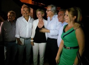 Il noto critico d’arte, Vittorio Sgarbi, lo scorso 21 agosto in visita nel centro arbereshe dell’alto crotonese. Erano le 21 circa del 10 agosto, quando il professor Sgarbi è arrivato nella piccola comunità albanofona. Ad accoglierlo il sindaco Carmine Maio, la sottosegretaria ai beni culturali, Dorina Bianchi, lo scrittore Carmine Abate e un cospicuo gruppo di estimatori e curiosi. Dopo aver fatto tappa nella piazza principale, stringendo la mano a quanti lo fermavano e scattarsi una foto ricordo, Vittorio Sgarbi è stato accompagnato nel Parco letterario Carmine Abate (nel corso del pomeriggio era stato