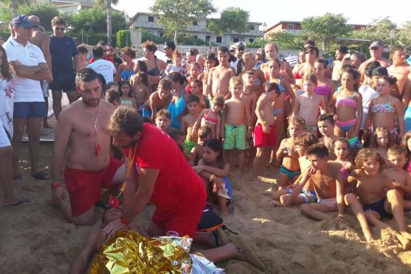 Papà ti salvo io a Isola Capo Rizzuto (1)Tema della giornata le 10 regole d’oro da rispettare in spiaggia per una corretta balneazione e i numeri di emergenza in mare 1530 e 118 sanitario. I bambini, attraverso il gioco, diventano “Baby Watch – Piccoli Bagnini” ed imparano i valori della sicurezza e della prevenzione. Il gioco intende creare nei bambini quella cultura che possa renderli responsabili per se stessi: “imparo per me e insegno a mio papà e insieme possiamo diffondere le regole essenziali per fare un bagno sicuro… ma solo io divento Piccolo Bagnino”. Novità dell’edizione 2016 la presenza della Scuola ITaliana Cani Salvataggio che hanno simulato il recupero di un disperso in mare con i cani Bagnino effettuando la dimostrazione mediante l’utilizzando del defibrillatore. I Volontari della GIOVI hanno inoltre distribuito materiale informativo per un mare sicuro e consegnato centinaio di Kit contenenti cappellino, t-shirt, portachiavi e gioco “Papà ti salvo io”.