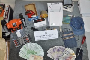 Dopo aver bloccato immediatamente l’auto, gli uomini della Polizia di Stato identificavano, grazie alla visione di impianti privati di video sorveglianza le due persone a bordo della Skoda Octavia come gli autori dei reati. Uno dei fermati risultava gravato da diversi precedenti di polizia. Localizzato immediatamente l’immobile dove gli stranieri venivano ospitati, gli agenti effettuavano un’accurata perquisizione domiciliare dove rinvenivano: un cappellino ed un marsupio identico a quelli usati dagli autori dei furti verificatisi nelle date sopra citate; del materiale idoneo a fabbricare le chiavi utilizzate per aprire i portoni blindati e la somma di 5400 euro in contanti. I due stranieri venivano posti in stato di fermo per furto aggravato e pericolo di fuga. Sono in corso indagini, coordinate dalla Procura della Repubblica di Cosenza, al fine di identificare altri eventuali complici. I due, dopo le formalità di rito sono stati tradotti presso la Casa Circondariale di Cosenza a disposizione dell’A.G..