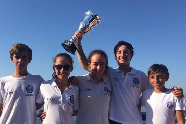Al termine di una stagione straordinaria il circolo pitagorico ha vinto anche la medaglia di bronzo ai Campionati italiani a squadre di Optimist disputati a Marsala. Ed è una prima volta, non solo per Crotone ma anche per la Calabria. Il titolo assoluto, la medaglia d’oro, è stato vinto dalla Fraglia Vela Malcesine (Lago di Garda), l’argento dal Nic Catania e il bronzo, appunto, dalla squadra del Club Velico Crotone capitanata da Demetrio Sposato, alla sua ultima regata in Optimist, e formata insieme a lui da Andrea Milano, Gaia Verri, Beatrice Sposato e Mauro Ruperto. Team allenato da Alessio Frazzitta, originario proprio di Marsala, sede della regata, e composto fra l’altro da ben due dei cinque atleti (Sposato e Milano) che quest’anno hanno partecipato ai Campionati del Mondo di Optimist in Portogallo vincendo il bronzo anche in quell’occasione.