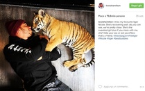 Lewis, che coraggio: scherzi e relax con le tigri