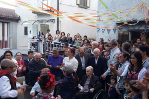 festa-per-maria-cinzia-annunziata-bellusci-e-vincenzo-forteI casi di centenari sono stati molti, ma abbiamo deciso di festeggiare, in maniera particolare, Maria Annunziata e Vincenzo perché appartengono alla stessa famiglia – ha concluso – e ciò li rende un caso assolutamente unico. Facendo gli auguri alla coppia, Gagliardi ha donato loro un quadro dell’artista Francesca Russo, rappresentante la Chiesa della Madonna del Gamio, in cui i due si sono sposati 69 anni fa. Il segreto? Mangiare regolarmente fichi, un frutto che non dovrebbe mai mancare. Così ha risposto Vincenzo alla domanda ironica del Sindaco su quale fosse l’elisir di lunga vita. Dopo la cerimonia religiosa Maria Annunziata e Vincenzo sono stati festeggiati in piazza con uno spettacolo musicale, il ballo dei bambini del gruppo Mini Folk di Morano e una degustazione di dolci tipici.