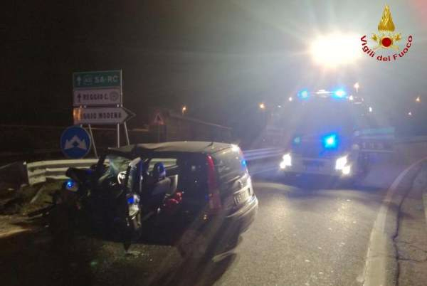 incidenteIntensa nottata quella appena trascorsa e che ha visto impegnata per diverse ore la squadra dei Vigili del Fuoco del Comando provinciale di Reggio Calabria, intervenuta in alcune zone cittadine per l’incendio di due autovetture ed un incidente stradale. In particolare, circa mezzora dopo la mezzanotte i soccorritori sono intervenuti sulla corsia Nord del raccordo autostradale, all’altezza dello svincolo di Modena, a causa di un incidente stradale autonomo che ha visto coinvolta un’utilitaria con a bordo il solo conducente. Per cause in corso di accertamento l’uomo, quarantenne, ha perso il controllo dell’auto andando a schiantarsi contro il guard rail. Le sue condizioni sono apparse abbastanza gravi e si è reso necessario, da parte degli operatori, l’utilizzo delle speciali attrezzature per poterlo estrarlo dalle lamiere e consegnarlo alle cure del servizio 118 che, dopo averlo stabilizzato ha provveduto al trasporto urgente presso il nosocomio reggino.