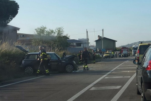 incidente-ss106-a-strongoli-marinaBrutto incidente che ha visto coinvolte due auto questa mattina al bivio di Strongoli Marina sulla strada statale 106, nel crotonese. Due le persone rimaste ferite in maniera fortunatamente non grave. L’impatto ha coinvolto una Mini Cooper e Fiat Uno, completamente distrutta nella parte posteriore, difatti l’asse si è letteralmente staccato. Uno dei conducenti è rimasto incastrato tra le lamiere dell’auto, estratto dai Vigili del Fuoco di Cirò Marina.