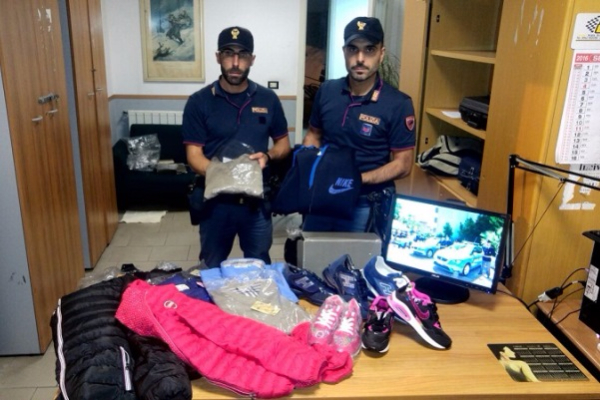 Viaggiava in auto con due borsoni di grandi dimensioni contenenti scarpe e capi d’abbigliamento contraffatti. Un uomo di 27 anni, di Cariati, è stato denunciato, in stato di libertà, dagli agenti della Squadra volanti della Questura di Crotone per ricettazione e introduzione e commercio di prodotti con segni falsi. I poliziotti, nell’ambito dei servizi di controllo del territorio predisposti dalla Questura di Crotone, hanno controllato l’auto condotta dall’uomo trovando 11 paia di scarpe e 31 capi di abbigliamento firmati ma palesemente contraffatti e con difetti di fabbricazione nelle cuciture, nei loghi e nelle etichette. All’interno della vettura i poliziotti hanno trovato anche un’agenda con appunti relativi alla compravendita. La merce è stata sequestrata.