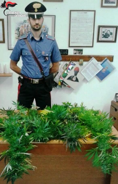 cannabis-soveria-carabinieriI Carabinieri della Compagnia di Soveria Mannelli, sono costantemente impiegati in servizi di controllo del territorio finalizzati a garantire sicurezza e rispetto della legalità in un humus morfologicamente adatto al fenomeno della “coltivazione”. È proprio alcuni giorni fa che i Carabinieri della Stazione di Conflenti (CZ), grazie ad una preliminare, meticolosa e costante raccolta di informazioni nonché ai numerosi servizi di osservazione, hanno rinvenuto in località “Muraglie” di quel Comune ed in area boschiva demaniale, una piantagione costituita da nr. 15 piante appartenenti alla famiglia delle “canabinaceae”, del genere cannabis indica “marijuana” coltivate senza la prescritta autorizzazione, aventi altezza fino ad un metro e mezzo. Le stesse venivano scoperte tra la folta vcannabis-soveria-carabinieri2egetazione, in due luoghi differenti distanti circa 50 metri l’uno dall’altro: si tratta infatti di un modus operandi ben noto a chi commette questo tipo di reato, finalizzato ad eludere il rinvenimento dell’intera piantagione da parte delle Forze dell’Ordine. Le piante sono state estirpate e debitamente sequestrate e, dopo il campionamento inviate al Laboratorio Analisi Sostanze Stupefacenti di Vibo Valentia per le analisi finalizzate a stabilirne la natura, la categoria di appartenenza e soprattutto la percentuale di principio attivo thc. Dalla sostanza stupefacente, opportunamente essiccata e lavorata, sarebbero state ricavate circa 2000 dosi che avrebbero fruttato sul mercato illegale circa 10.000 euro. Proseguono nel frattempo le indagini dell’Arma volte ad individuare gli eventuali responsabili della coltivazione della piantagione.