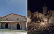 Norcia, la chiesa di San Salvatore a Campi prima e dopo i crolli. FOTO