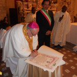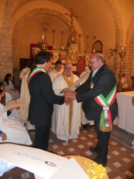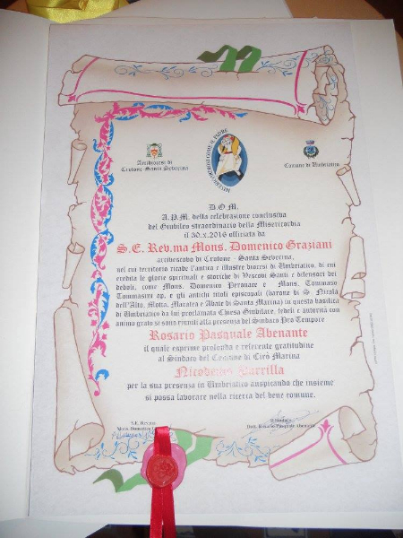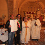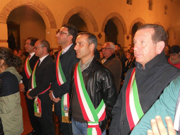 chiusura-della-porta-santa-della-basilica-di-umbriatico27aDomenica 30 ottobre, in occasione della cerimonia di chiusura della Porta Santa, della ex Cattedrale di Umbriatico, ora Basilica, ufficiata da S.E. il Vescovo Mons. Graziani, concelebrata da Padre Edoardo Caruso vicario generale e Don Thomas vicario della vicaria di Umbriatico Verzino Pallagorio e Savelli, nella stessa cerimonia si è tenuto il raduno storico dei Sindaci dei comuni della Ex diocesi di Umbriatico che comprendeva Cirò, Crucoli, Melissa, Verzino, Savelli, Pallagorio, Casabona, San Nicola dell’Alto, Carfizzi e Cirò Marina che ai tempi della diocesi di Umbriatico non esisteva proprio, come comune, ma che era il feudo della residenza estiva dei Vescovi di Umbriatico. Alla cerimonia hanno preso parte il Sindaco di Cirò Mario Caruso, quello di Verzino Franco Parise, quello di Pallagorio Umberto Lorecchio, quello di Casabona Natale Carvello, quello di Melissa Gino Murgi, e quello di Strongoli Michele Laurenzano, che Li ringrazio a nome mio e di tutta la comunità , per averci voluto onorare con la loro presenza.