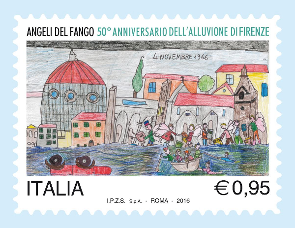 Il Ministero dello Sviluppo Economico emetterà, giovedì 4 novembre, un francobollo celebrativo degli “Angeli del fango”, nel 50° anniversario dell’alluvione di Firenze.
