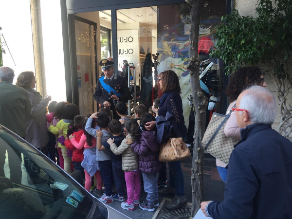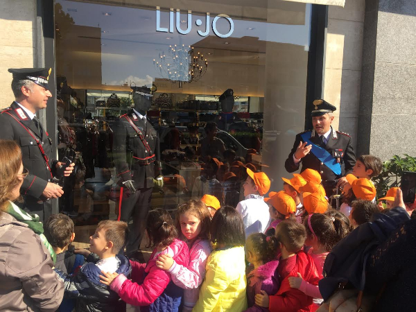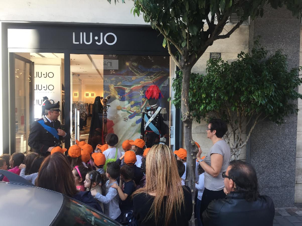 Una volta terminata la visita presso la Caserma, gli alunni si sono recati presso i negozi “Lu Jo “ e “Vitale” nella centralissima via Veneto ove anche quest’anno il Comando Provinciale ha allestito delle vetrine a tema con l’esposizione di alcune divise: sono state illustrate ed ammirate la Grande Uniforme Speciale del grado di Capitano, la divisa da Maresciallo Comandante di Stazione, di Carabiniere in uniforme da Ordine Pubblico e quella da motociclista del Nucleo Radiomobile.