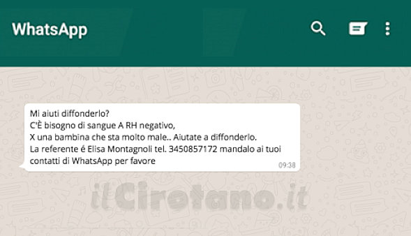 BUFALA, messaggio su Whatsapp: Serve sangue per una bambina che sta molto male