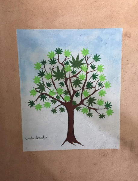 da un “albero di Canapa”; ……dopo più di un anno, nonostante è rimasta esposta ad ogni tipo di intemperie, sia l’intonaco, che il dipinto, sono rsultati perfettamente integri, e più belli di prima !