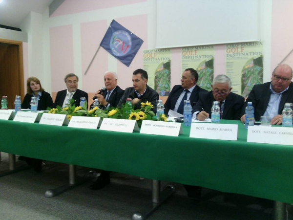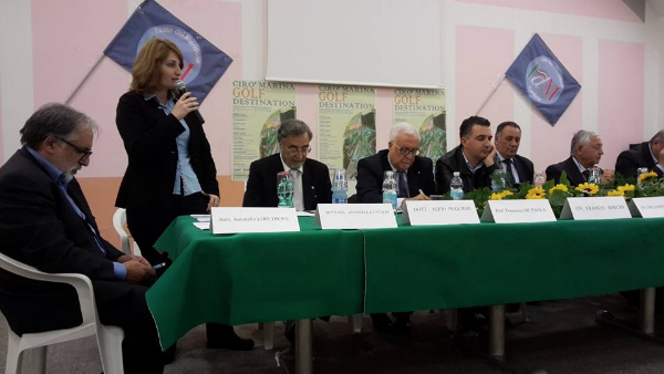 E “CALABRIA GOLF DESTINATION. Progetto turistico 365 giorni all’anno” è stato l’argomento dell’incontro che si è tenuto nei giorni scorsi a Ciro’ Marina, al tavolo dei relatori il sindaco Nicodemo Parilla, le sfere dirigenziali de L’Italia del Meridione di Crotone e il segretario regionale Nicodemo Filippelli, gli onorevoli Greco e Sergio e per la Federazione Italiana Golf erano presenti i Delegati, regionale Marra Mario e della provincia di Crotone Salvatore Gaetano. Nella loro relazione Marra e Gaetano, oltre ad evidenziare dati, cifre e numeri che attestano lo sport del Golf come un ottimo investimento, sia pubblico sia privato, hanno espresso parole d’encomio verso la proposta di legge, che mira e discute di un turismo quello sportivo che realmente, per le sue peculiarità, ben si sposa con le esigenze e le richieste di un mercato nuovo anche in questo settore. “I turisti golfisti mediamente spendono quattro volte di più di un qualsiasi altro viaggiatore”, senza considerare l’indotto che gira intorno: come l’enorme interesse dei media e degli sponsor.