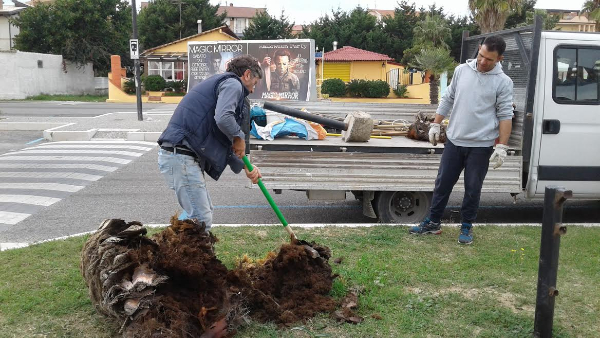 Gli ultimi interventi realizzati sul lungomare hanno riguardato anche la rimozione di vecchie palme phoenix distrutte dal punteruolo rosso e la pulizia dei marciapiedi adiacenti alla aiuole riqualificate.