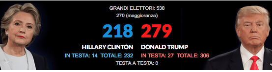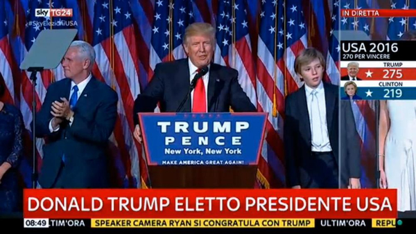 Il candidato repubblicano, in una lunga notte elettorale, ha sconfitto Hillary Clinton. Dopo Barack Obama, sarà lui il nuovo inquilino della Casa Bianca, guida della superpotenza. Hillary Clinton non parlerà ai suoi sostenitori, ha telefonato all’avversario però. “Andate a casa, non avremo niente da dire stasera” ha detto John Podesta, il manager della sua campagna.