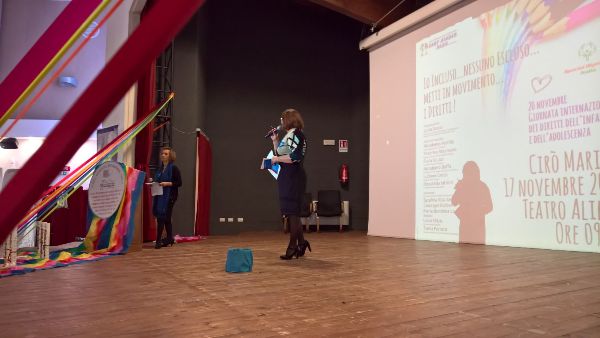 Io Incluso…Nessuno Escluso… Metti In Movimento I Diritti”. Questo il titolo dell’ importante tematica: I diritti dell’infanzia e dell’adolescenza, organizzato dalla Cooperativa Sociale I Tre Melograni, diretta dalla Dirigente del Polo d’infanzia Baby Kinder Park, Lucia Sacco e dal giornalista, Oscare Grisolia, referente regionale del Concorso Internazionale “Diritti a Colori”. Una giornata coloratissima dedicata a quelli che sono i diritti dei bambini e i dovere degli adulti e dei docenti, delle istituzioni e delle famiglie in primis, i diritti sacrosanti di coloro che saranno gli uomini e le donni del futuro perché migliorare le loro condizioni di vita, seguirli, educarli allo sport, alla cultura, alla bellezza, all’amicizia, dare loro il diritto a questi valori, significa costruire un domani migliore per loro e per l’umanità. Ad aprire i lavori, sul palco del teatro Alikia, il 17 novembre alle ore 09:30 a Cirò Marina, è stata appunto la dirigente Lucia Sacco, presentando gli importanti progetti e lavori svolti negli anni, video e ricordi che hanno emozionato per la valenza dei valori umani che hanno rimbombato nella gremita sala dell’Alikia, toccando il cuore di tutti ed emozionando. In particolare il video con il saluto del Papa Francesco , per gli atleti speciali del Soi e a seguire, il giornalista Oscare Grisolia ha presentato un video con foto dei volontari scaut di Cirò Marina che nel corso degli anni hanno svolto il loro impegno volontario accompagnati da Lucia Sacco, responsabile nazionale dei volontari Soi per l’equitazione. E’ stata questa l’occasione scelta da Oscare Grisolia per comunicare e informare ufficialmente la platea della recente nomina di Lucia Sacco a Direttore Provinciale del Soi. Un riconoscimento alle capacità e competenze della Sacco in primis ma anche una scelta precisa del Soi di investire la nostra provincia di un’occasione per la promozione delle attività di Special Olympics Italia che si occupa principalmente di inclusione dei disabili mentali alla pratica delle attività motorie. Nomina meritatissima. A dirigere i lavori, la giornalista Francesca Gallello, con un ricco programma e importanti ospiti come il Sindaco del comune di Cirò Marina, Nicodemo Parrilla, il quale nel fare il suo saluto, si è complimentato con la dirigente Sacco per il grande contributo sociale che porta a Cirò Marina ed a tutto il territorio. Presente Federica Roccisano, assessore ai servizi sociali della Regione Calabria, che ha sottolineato quanto sia importante organizzare giornate come queste. Importante per il valore sociale e di stimolo alle Istituzioni e agli adulti affinché si dia voce ai diritti dell’infanzia e dell’adolescenza cominciando sin dal presente. La dott.ssa Tiana Ferrari, terapista della neuro e psicomotricità dell’età evolutiva, con il suo intervento , molto professionale e chiaro, ha messo in evidenza l’importanza di coinvolgere e sostenere i bambini con problematiche. Presente anche la Presidente Provinciale dell’UNICEF, Donatella Intrireri, l’assessore comunale Nicodema Baffa, il dirigente Giuseppe Barberio, , l’assessore del comune di Strongoli Maria Sgrò. La giornata è stata arricchita da musica e magnifiche esibizioni dei piccoli della Baby Kinder Park, che con bandiere coloratissime di pace e paesi, hanno rallegrato e portata tanta tenerezza . Durante l’evento vi è stata la premiazione del concorso internazionale di disegno e arti grafiche “Diritti a colori” dei laboratori di Strongoli, Crotone e Cirò Marina con la consegna di pergamene e doni che i bambini hanno gradito, sotto lo sguardo compiaciuto dei docenti e dei dirigenti. Gli alunni della scuola primaria del Plesso Ferrari si sono esibiti in un coloratissimo ballo curato dal giovanissimo coreografo Manuel Santoro. Eventi come questi, sono semi di crescita per il territorio, semi che il dirigente Lucia Sacco e il giornalista Oscare Grisolia, hanno gettato con amore sul territorio portando sempre importanti novità ed importanti inizi, infatti sono stati i primi a realizzare un nido d’infanzia nel 1993, che nel tempo si è sempre più strutturato, divenendo oggi un polo d’infanzia noto e conosciuto a livello Regionale e oltre grazie alla fitta rete di scambi culturali intrattenuti con istituzioni Nazionali, che accompagna nella crescita i baby. Una crescita che non è limitata ai primi anni di vita dei piccoli ma è un crescere insieme, con loro. Molti, infatti, gli ex alunni, ormai laureati, collaborano, quando possono, in quelle che sono impegni sociali e non solo sul proprio territorio. Positivo è vedere ex allievi che oggi , dopo la laurea, fanno tirocinio in quelle classi, tra quei banchi dove loro stesso hanno trascorso i primi anni di vita scolastica ed educativa, sicuramente una magnifica ed unica realtà.