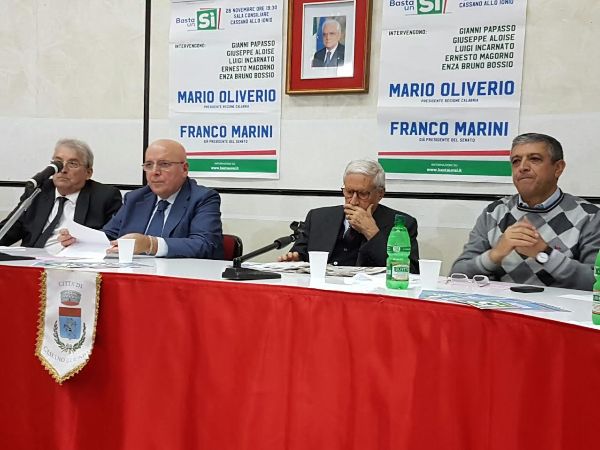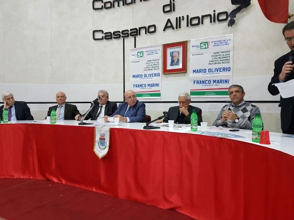 Nella giornata del 26 novembre, dopo l’incontro svoltosi presso la Sala degli Specchi della Provincia di Cosenza, a cui ha partecipato anche l’ex presidente del Senato Franco Marini, Oliverio si è spostato a Cassano allo Jonio dove, sempre insieme all’ex presidente del Senato, ha incontrato i cittadini nel corso di una affollata manifestazione pubblica a cui hanno preso parte anche il sindaco della città, Gianni Papasso, il deputato del Pd Nicodemo Oliverio, il segretario regionale socialista Luigi Incarnato, l’ex deputato Giuseppe Aloise e il segretario regionale del Pd, Ernesto Magorno.