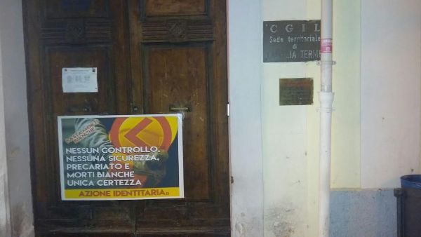 morti-bianche-blitz-davanti-le-tre-sedi-sindacali1I manifesti contro le morti bianche con scritto: “Nessun controllo, nessuna sicurezza, precariato e morti bianche unica certezza”.