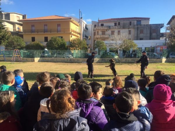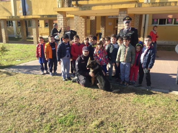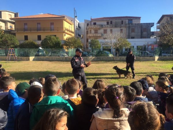 Una mattinata speciale dedicata ai più piccoli a Cirò Marina dove ben quattro classi dell’istituto scolastico “Ferrari” di via Libertà hanno avuto l’occasione di conoscere meglio i Carabinieri e i cani del nucleo cinofili dei Carabinieri di Vibo Valentia. I bambini hanno infatti avuto l’occasione di incontrare, come ormai di consueto viene fatto negli incontri sulla legalità, i militari del Comando di Cirò Marina e conoscere meglio il lavoro dei Carabinieri e i compiti che svolgono quotidianamente per la comunità e per i più piccoli. In più in quest’occasione è stato anche presentato ai bambini delle classi prime Willy, un pastore tedesco di quattro anni, impiegato quale cane anti droga presso il nucleo cinofili dei Carabinieri di Vibo Valentia. I giovani alunni hanno potuto giocare con Willy e testare le peculiari capacità che gli permettono, grazie al suo sviluppatissimo olfatto, di svolgere il suo lavoro al fianco dei Carabinieri cinofili. Sono stati eseguiti vari esercizi e tutti i bambini hanno avuto la possibilità di interagire con Willy e fare tutte le domande relative al suo addestramento ed alle sue peculiari capacità professionali.