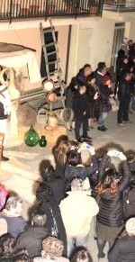 Un momento innovativo e di grande condivisione la sera del 25 dicembre. Il Musical “La Notte Santa” all’interno del Presepe Itinerante ha avuto il suo fascino richiamando una gran fetta di spettatori venuti anche dai paesi limitrofi; oltre 700 persone erano presenti alla manifestazione che si è snodata per un per tratto di strada di circa 500 metri trovando il suo punto di forza in piazza Carlo Alberto dalla Chiesa che si è trasformata per l’occasione in un antico borgo rappresentativo dell’epoca e dove si sono sviluppati l’incontro dei Re Magi con Erode dietro un “quadro” incorniciato da drappi color oro e rosso che rappresentavano il palazzo dello stesso re contornato da centurioni romani così come vuole la storia biblica, e la Natività. L’ambientazione è stata costruita a mò di Presepe vivente cercando di avvicinarci con fedeltà a quelli che erano i mestieri di quel tempo e che oggi sono in via di estinzione. Sono state allestite bancarelle per la vendita di tessuti, tappeti, frutta, uova e botteghe come quelle del fornaio, del fabbro, della filatrice. Ma la vera innovazione è stata la costruzione delle locande strutturalmente in legno, dove Giuseppe e Maria, i due viandanti straccioni e pezzenti, quest’ultima in groppa all’asinello e con il pancione, andavano a chiedere alloggio per la notte perché stanchi del lungo viaggio che avevano intrapreso per arrivare a Betlemme e dove, puntualmente, ricevevano un No perché le locande erano piene di gente facoltosa che aspettavano di vedere la stella. Ad ogni capanna si rinnovano i rintocchi delle campane così come descritto nella poesia di Guido Gozzano dalla quale ha trovato ispirazione il musical e che hanno donato alla rappresentazione un tocco di magia e di suggestività rendendola emotivamente coinvolgente ed avvincente.
