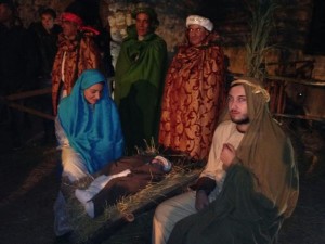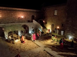 Il Castello , ricostruito da Giustiniano nel 538 d.c., si è vestito della luce delle fiaccole e delle lucerne; nelle stanze e nel cortile, sono state allestite scene in cui, adulti e bambini, si sono mossi come gli artigiani di una volta, ritornati a rompere il silenzio con suoni, voci, ed allegria; Erode si è mostrato in tutto il suo lusso; soldati hanno vigilato sul vecchio selciato, che ha sostituito il ponte levatoio; i Re Magi sono arrivati a cavallo per portare i loro doni al Bambinello, che è nato nella mangiatoia, posta sotto uno degli archi del cortile. Sul terrapieno pastori e pecore, attorno al fuoco, hanno contribuito a far rivivere l’incanto della Notte Santa, in un ambiente semplice, genuino e fiabesco. De Tursi Giuseppe e Teresa Perri hanno rappresentato Giuseppe e Maria nella grotta con il piccolo Antonio Pio De Tursi nelle vesti di Gesù. Dopo un’ora e mezza sono stati sostituiti da Alessandra ed Amedeo Codispoti (Maria e Giuseppe) e dal piccolo Francesco Milelli (Gesù). Il castello, era chiuso da anni per consentire i lavori di restauro e molti, soprattutto i giovani, non sono mai entrati in questa struttura, che racchiude una parte della storia di Strongoli.