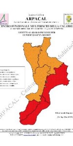 “Pertanto – conclude Niccoli – considerato l’assetto idrogeologico del territorio regionale questo Centro Funzionale ha emesso una estensione e aggiornamento dell’Avviso di Criticità in corso di validità. In particolare fino alle ore 24:00 della giornata odierna: livello rosso (massimo livello di rischio) per tutta la fascia ionica centrale e meridionale e per il versante tirrenico meridionale e livello arancione per le restanti zone; dalle 00:00 alle 14:00 di giorno 24 gennaio: livello arancione su versante ionico centrale e meridionale e versante tirrenico meridionale”.