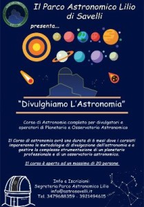 Al via il Corso di Astronomia al Parco Lilio di Savelli1Corso di Astronomia completo al Parco Astronomico Lilio di Savelli per divulgatori e operatori di Planetario e Osservatorio Astronomico.