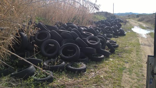 Nel corso di questo accertavano che ignoti avevano realizzato un deposito incontrollato di rifiuti speciali nei pressi della località Gabella lungo via Dei Gigli. Nell’area, di proprietà verosimilmente privata, ignoti hanno depositato circa 1500 pneumatici ed alcune lastre di eternit.