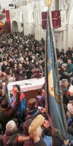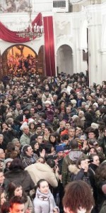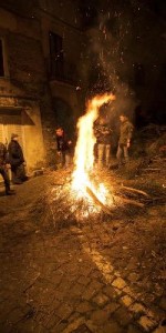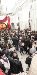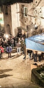 LA FESTA DI SAN LEONE A SARACENA/SCHEGGE DI ULTIMITÀ. La strada principale – scrive TETI nel post pubblicato sul suo account Facebook per l’edizione 2016 di SAN LEONE – si animava di gente, suoni e rumori. I vicoli che si scorgevano dalla strada erano ostruiti da grandi cataste di legno. Dalla chiesa era appena uscito il corteo processionale con la statua di San Leone, preceduta dai volti antichi e compresi dei congregati, e al loro fianco, avanti e dietro la statua, procedeva una folla rumorosa, pressante, urlante, colorata. Giovani e giovanissimi, uomini e donne, ballavano al ritmo della tarantella assecondando la musica di organetti, tamburelli e fisarmoniche in mano a bravi suonatori del paese. (..). Una miscela singolare e inattesa e di canti religiosi, canzoni tradizionali, urla, imprecazioni, preghiere, e ripetuti, insistiti, improvvisi «EVVIVA S. LEONE»… L’invocazione augurale era trascinata, urlata, ripetuta da centinaia di persone, in tempi e in modi diversi, nel mezzo di salti, girotondi, danze, comportamenti e gesti che evocavano antichi riti di possessione e di guarigione. Il rientro in chiesa e la sistemazione della statua del santo sull’altare maggiore era, come avrei verificato negli anni successivi, il momento più intenso e problematico: le persone di tutte le età si spingevano l’altare tra urla, spinte, balli, invocazioni. Le donne più anziane alzavano le braccia al cielo e si battevano il petto: gli uomini della congrega erano in preda alla commozione, sul punto di piangere. Dopo un lento e lungo addio al Santo, i fedeli uscivano a gruppi e alla spicciolata e andavano verso le loro case, in bassi e i vicoli trasformati in enormi cucine e trattorie aperte e all’aperto attorno agli enormi falò che, accesi al passaggio della statua, venivano alimentate con cataste di legna. (..). Attorno ai fuochi si ritrovano, si salutavano e si abbracciavano amici, parenti, gruppi di familiari, persone del vicinato. (..). Attorno ai falò venivano sistemati, offerti, consumati fave bollite, fichi secchi o infornati e ripieni di miele e noci, a forma di crocette, dolci di farina e zucchero fritti nell’olio, granturco bollito, fritto o abbrustolito sulle braci.