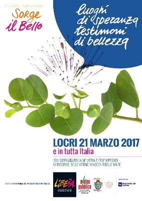 Quest’anno la Giornata si svolgerà a Locri promossa da Libera e Avviso Pubblico, in collaborazione con la Rai Responsabilità Sociale, Conferenza Episcopale Calabra e con il patrocinio del Comune di Locri e sotto l’Alto Patronato del Presidente della Repubblica.