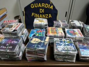 I supporti magnetici “pirata” erano esposti su bancarelle occasionali ed erano riposti all’interno di custodie plastificate con le relative copertine a colori, illegalmente riprodotte, riferite ad album musicali ed a film attualmente in proiezione presso le sale cinematografiche.