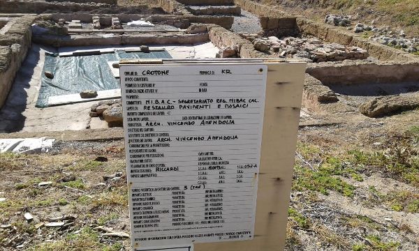 Che strano destino insegue i ruderi del parco archeologico di Crotone – Capocolonna! Si scava continuamente, si restaura e si conserva interrato. Come dire che si sprecano notevoli risorse pubbliche per nulla. Tutto torna sottoterra. Nessuna fruizione per studiosi, curiosi e turisti. È quel che sta accadendo ancora una volta sul promontorio lacinio.. Era già successo nel 2003. Stiamo parlando del famoso “mosaico” scoperto nel 1910 dall’archeologo Paolo Orsi e giustamente reinterrato per proteggerlo dalle intemperie naturali e dalle orde vandaliche. Riportato alla luce, per la seconda volta, nei giorni scorsi, per verificarne lo stato di salute e curarlo per essere nuovamente interrato. Si tratta del prezioso pavimento mosaicato con i delfini facente parte di un ampio edificio termale di epoca greco-romana che si trova posizionato davanti alla chiesetta-santuario della Madonna di Capocolonna. Stesso lavoro e sorte interessa anche gli intonaci presenti nell’area termale. Il famoso mosaico, per fortuna, è visibile solo in fotografia tratta da un disegno realizzato, all’epoca, dallo stesso Orsi. Altrimenti buio! È un pavimento a mosaico policromo così descritto: decorato con una fascia esterna a meandro che cinge una seconda bianca con iscrizione di dedica dei duoviri Lucilius Macer e Anneus Traso, che edificarono il complesso; due fasce nere con fascia mediana decorata a cirri incorniciano l’emblema con rombo centrale, decorato a scacchiera, inscritto in un quadrato con quattro delfini negli spazi angolari. Continuiamo a sprecare risorse pubbliche senza utilità! Cui prodest?